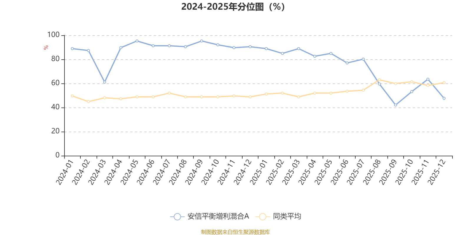 通过所选区间该基金净值增长率分位图,可以观察该基金与同类基金业绩比较情况。图为坐标原点到区间内某时点的净值增长率在同类基金中的分位数。