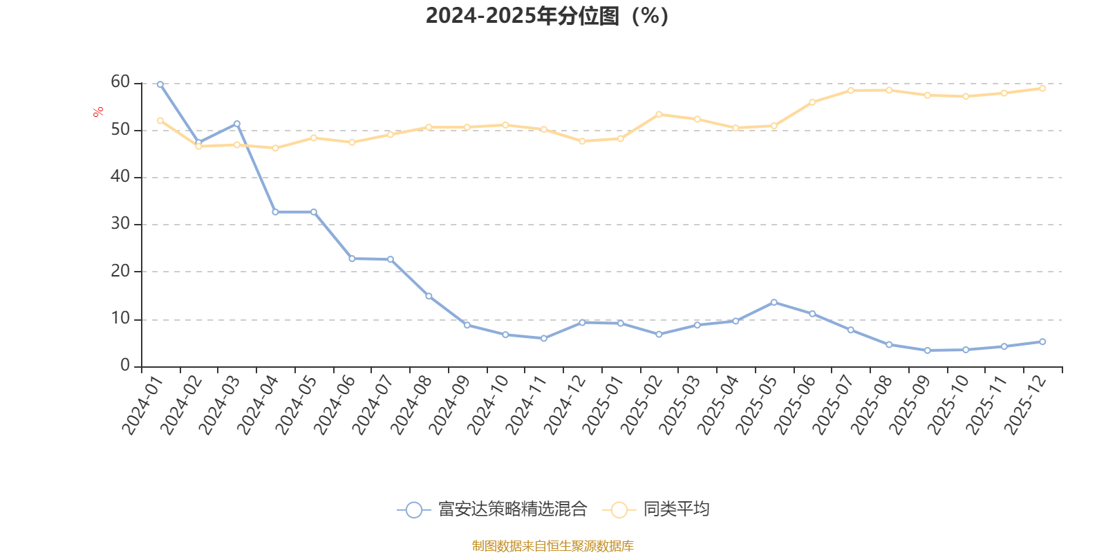 通过所选区间该基金净值增长率分位图,可以观察该基金与同类基金业绩比较情况。图为坐标原点到区间内某时点的净值增长率在同类基金中的分位数。