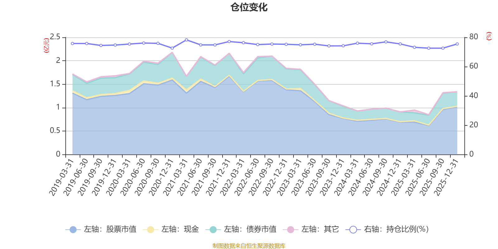 据定期报告数据统计,近三年平均股票仓位为74.71%,同类平均为72.57%。2021年一季度末基金达到78.27%的最高仓位,2025年上半年末最低,为72.61%。