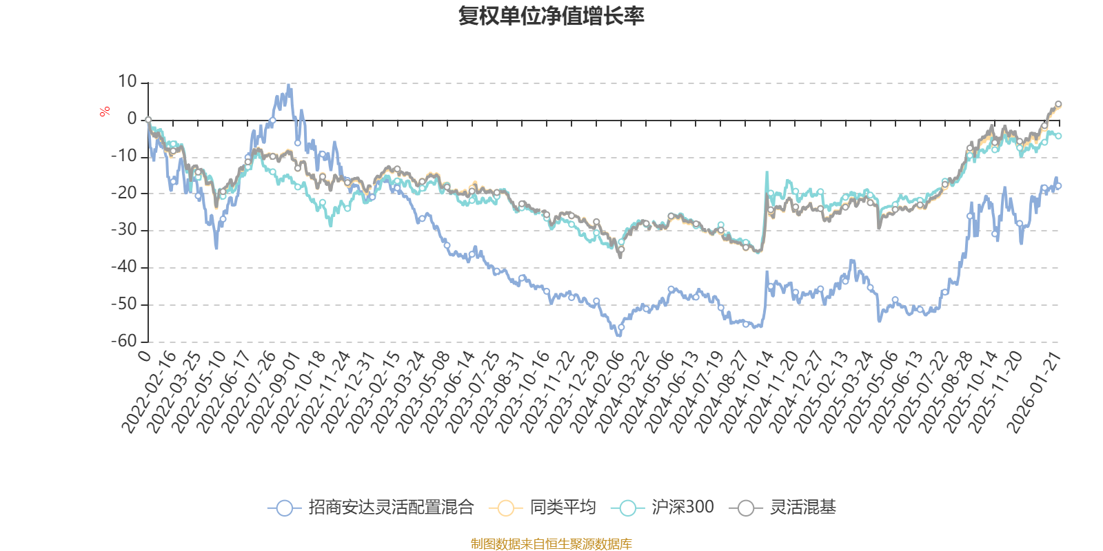 截至1月21日,招商安达灵活配置混合近三个月复权单位净值增长率为10.85%,位于同类可比基金474/1286;近半年复权单位净值增长率为53.63%,位于同类可比基金124/1286;近一年复权单位净值增长率为47.80%,位于同类可比基金341/1286;近三年复权单位净值增长率为-1.37%,位于同类可比基金1028/1286。