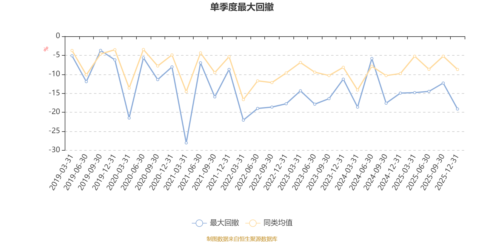 通过所选区间该基金净值增长率分位图,可以观察该基金与同类基金业绩比较情况。图为坐标原点到区间内某时点的净值增长率在同类基金中的分位数。