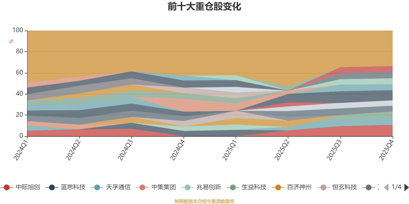 截至2025年四季度末,基金十大重仓股分别是中际旭创、新易盛、天孚通信、源杰科技、生益科技、胜宏科技、工业富联、沪电股份、东山精密、仕佳光子。