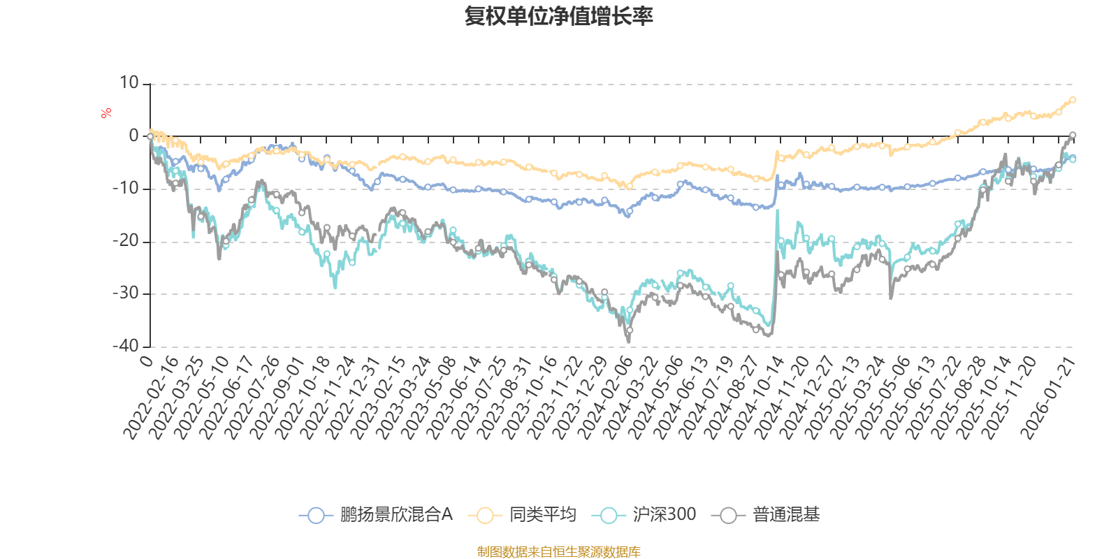 截至1月21日,鹏扬景欣混合A近三个月复权单位净值增长率为2.44%,位于同类可比基金245/629;近半年复权单位净值增长率为4.23%,位于同类可比基金322/629;近一年复权单位净值增长率为6.62%,位于同类可比基金365/626;近三年复权单位净值增长率为3.65%,位于同类可比基金489/564。