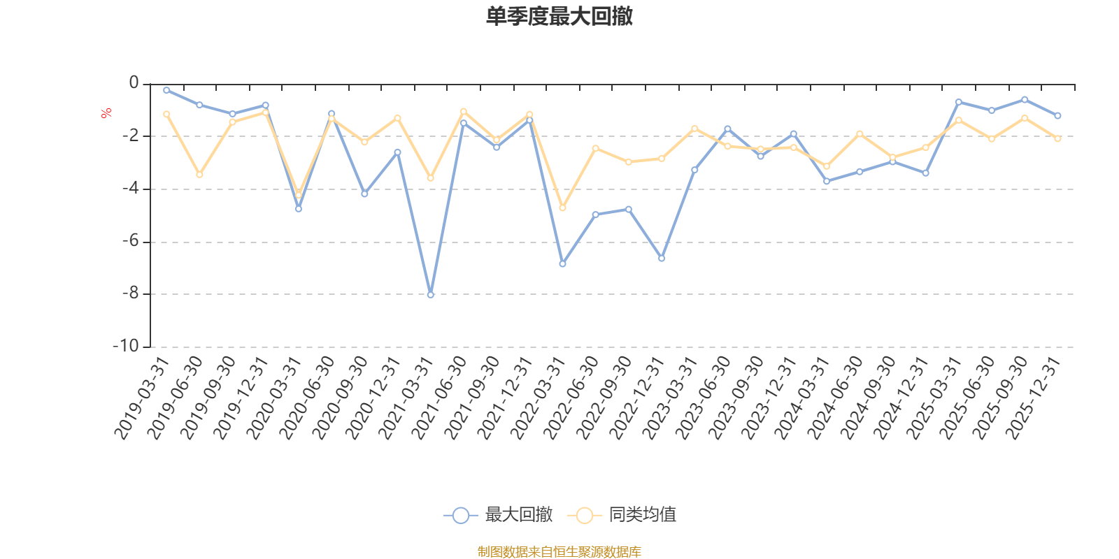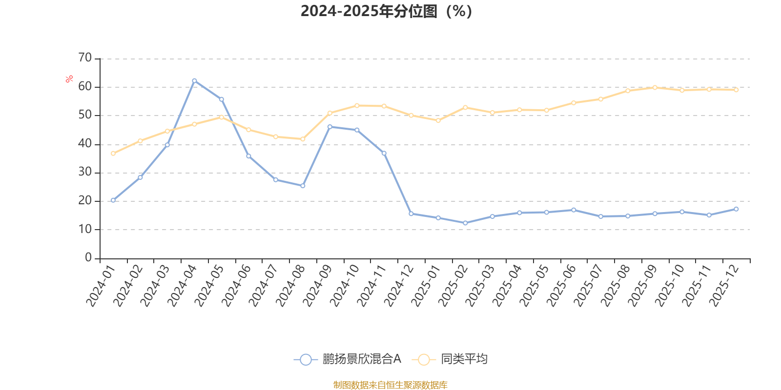 通过所选区间该基金净值增长率分位图,可以观察该基金与同类基金业绩比较情况。图为坐标原点到区间内某时点的净值增长率在同类基金中的分位数。