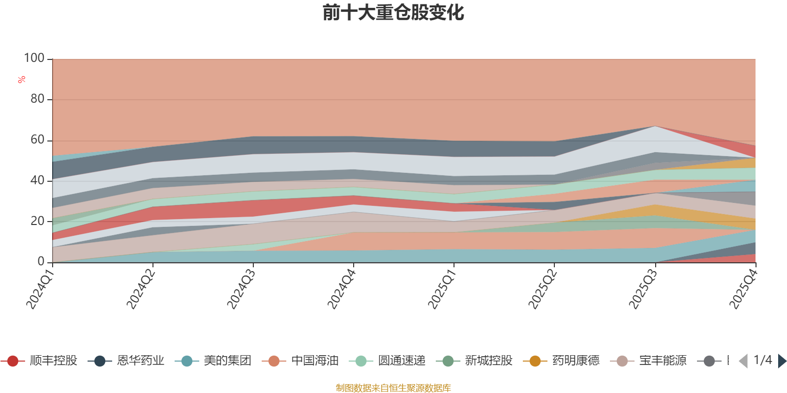 该基金持股集中度较高。截至2025年四季度末,基金十大重仓股分别是巨星科技、宝丰能源、美的集团、华电国际、上海机场、中策橡胶、恩华药业、药明康德、赛轮轮胎、顺丰控股。