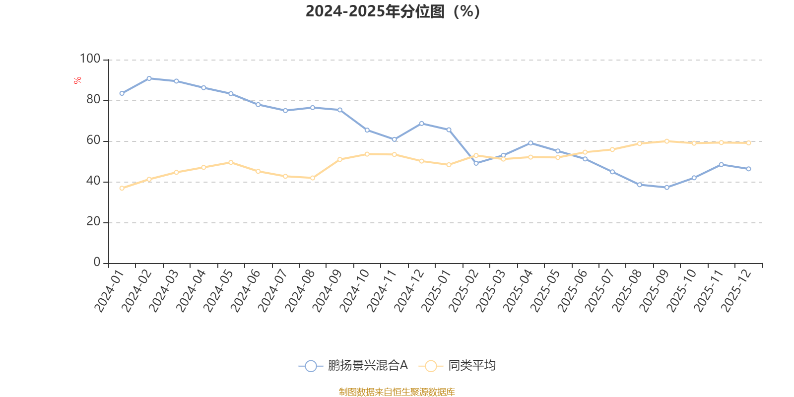 通过所选区间该基金净值增长率分位图,可以观察该基金与同类基金业绩比较情况。图为坐标原点到区间内某时点的净值增长率在同类基金中的分位数。