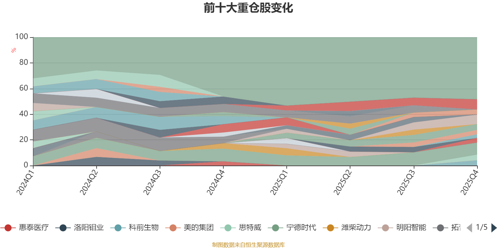 截至2025年四季度末,基金十大重仓股分别是宁德时代、广钢气体、紫金矿业、国瓷材料、思特威、科前生物、大金重工、徐工机械、招商蛇口、海泰新光。