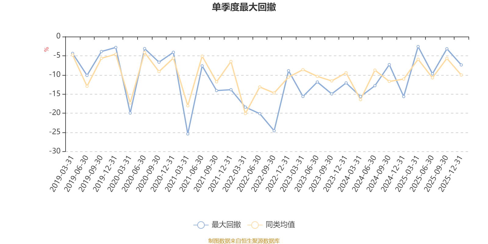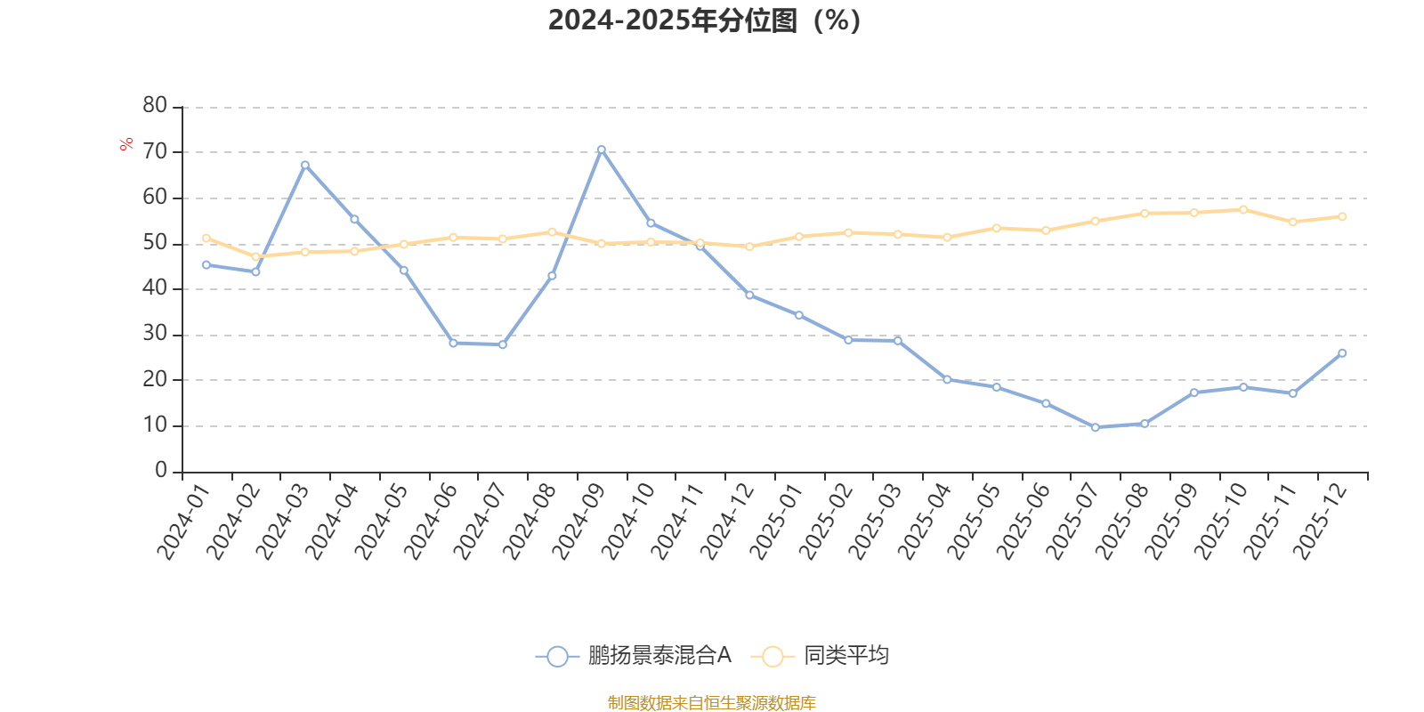 通过所选区间该基金净值增长率分位图,可以观察该基金与同类基金业绩比较情况。图为坐标原点到区间内某时点的净值增长率在同类基金中的分位数。