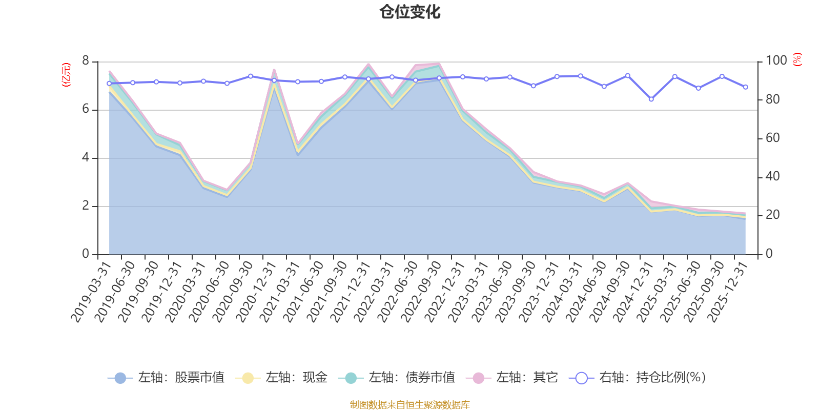 据定期报告数据统计,近三年平均股票仓位为89.4%,同类平均为85.83%。2024年三季度末基金达到92.7%的最高仓位,2024年末最低,为80.5%。