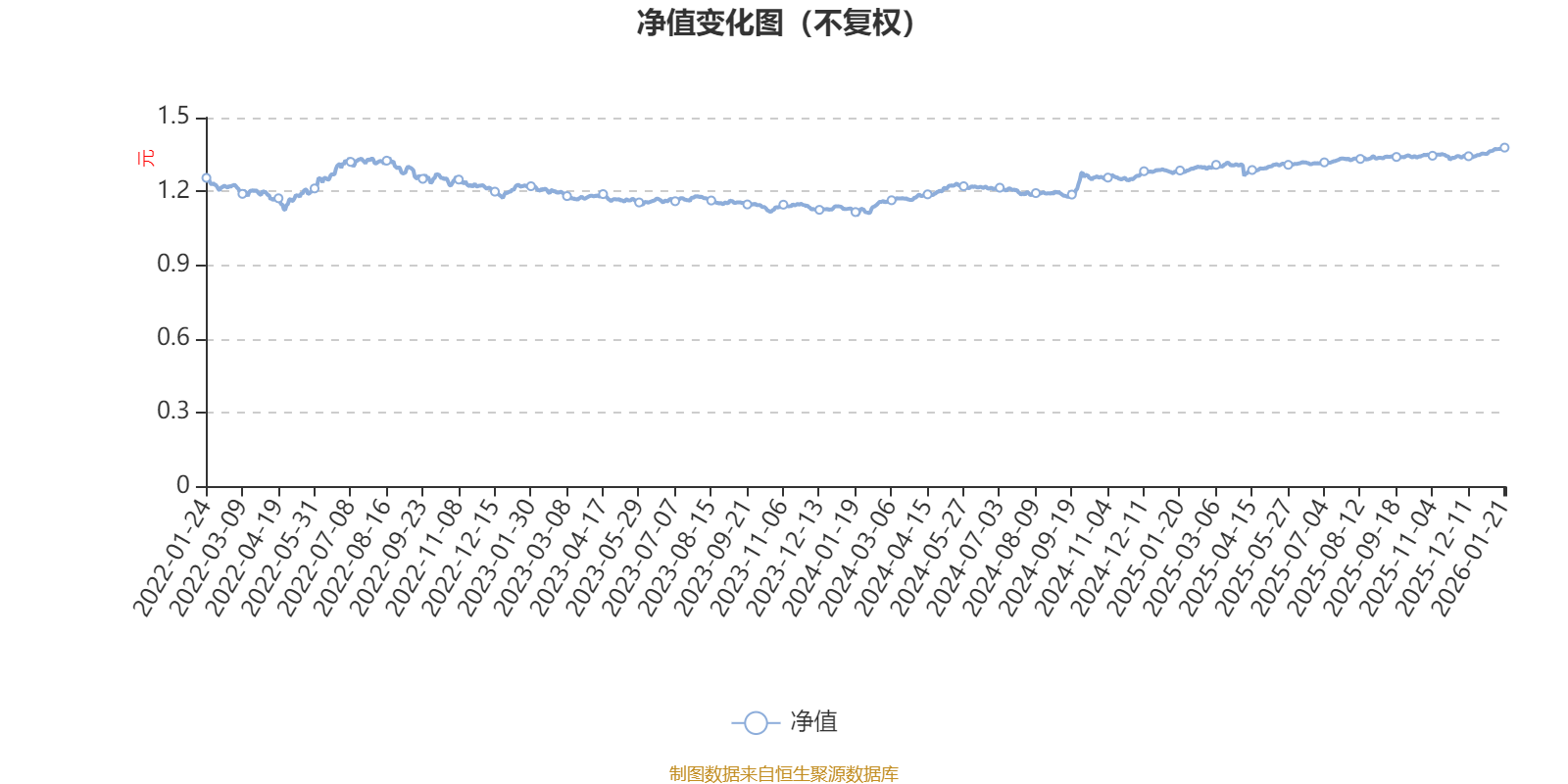 该基金属于偏债混合型基金。截至1月21日,单位净值为1.378元。基金经理是马超和黄乐婷。