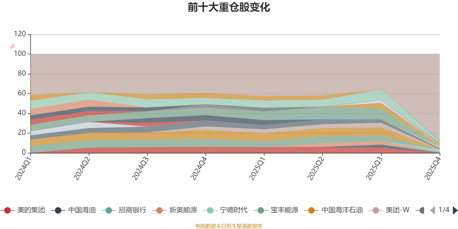 截至2025年四季度末,基金十大重仓股分别是宁德时代、贵州茅台、新易盛、招商银行、紫金矿业、中国平安、兴业银行、东方财富、恒瑞医药、国泰海通。