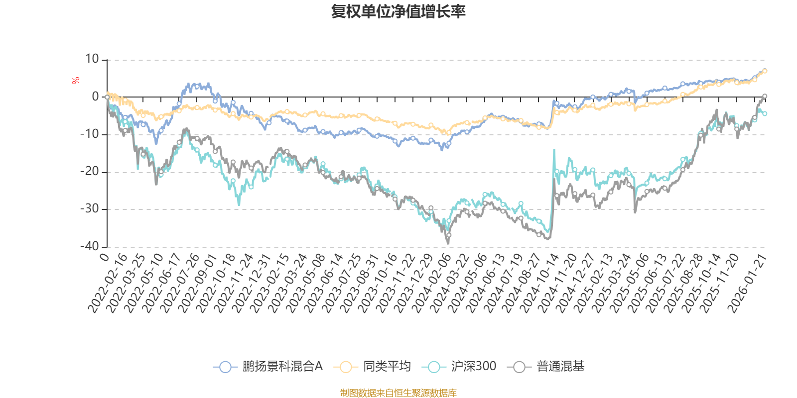 截至1月21日,鹏扬景科混合A近三个月复权单位净值增长率为2.60%,位于同类可比基金221/629;近半年复权单位净值增长率为3.67%,位于同类可比基金381/629;近一年复权单位净值增长率为7.13%,位于同类可比基金338/626;近三年复权单位净值增长率为12.85%,位于同类可比基金242/564。
