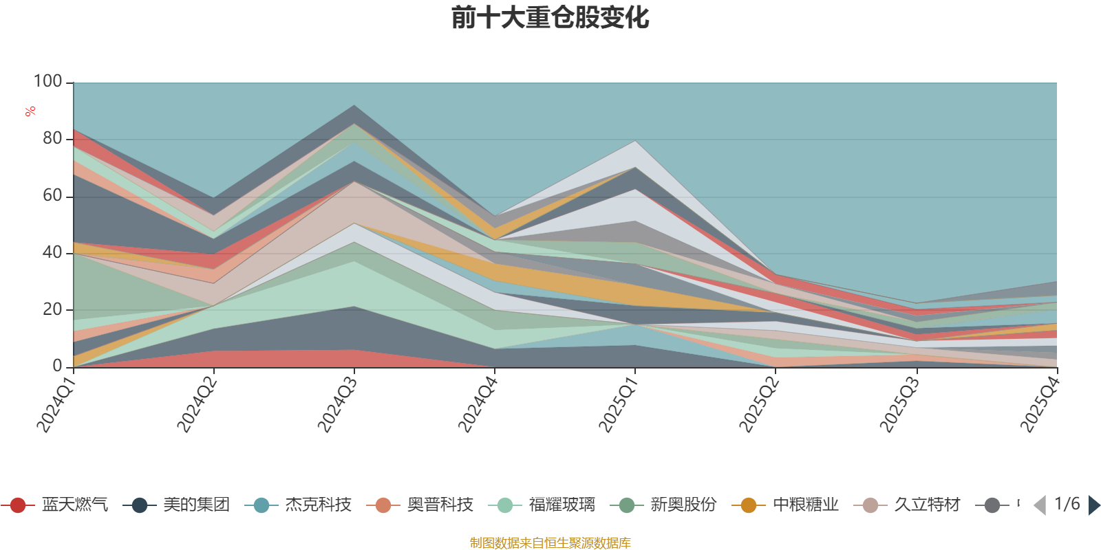 截至2025年四季度末,基金十大重仓股分别是峨眉山A、春秋电子、伟明环保、宝丰能源、久立特材、分众传媒、新和成、海天味业、中国人保、梅花生物。