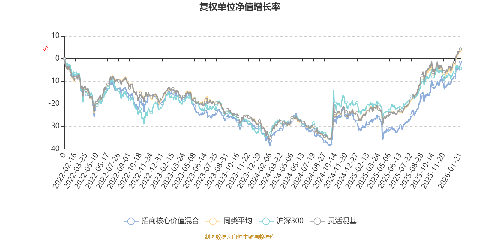 截至1月21日,招商核心价值混合近三个月复权单位净值增长率为12.53%,位于同类可比基金362/1286;近半年复权单位净值增长率为33.14%,位于同类可比基金376/1286;近一年复权单位净值增长率为41.00%,位于同类可比基金466/1286;近三年复权单位净值增长率为16.05%,位于同类可比基金633/1286。