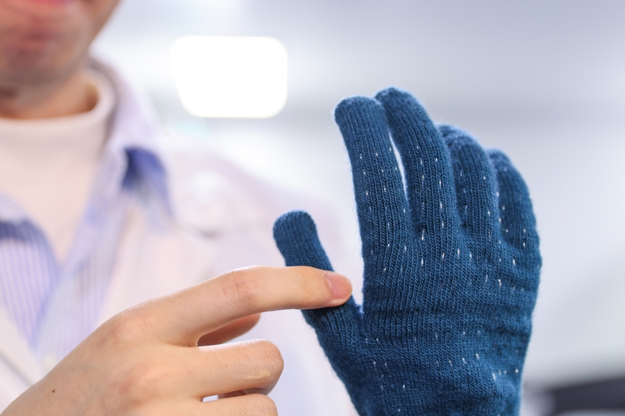 基于“纤维芯片”,无需外接处理器,可直接编织构建柔软、透气的全柔性电子织物系统。
