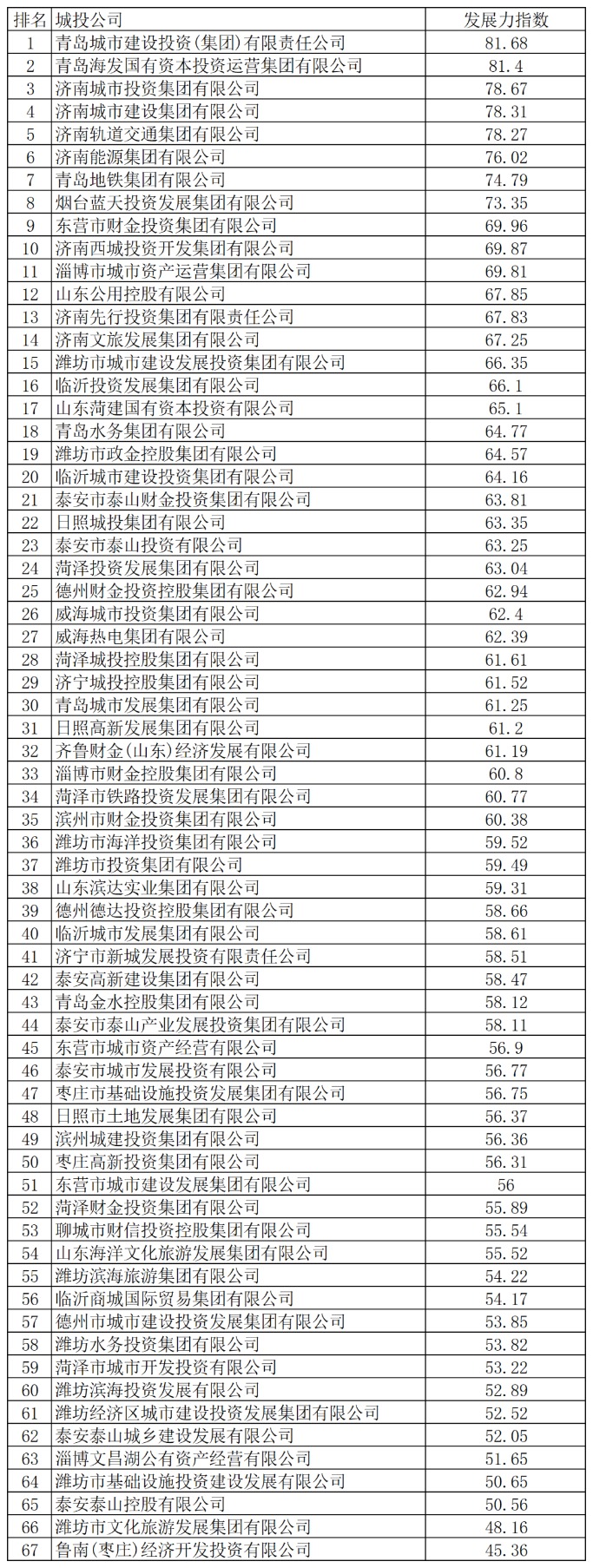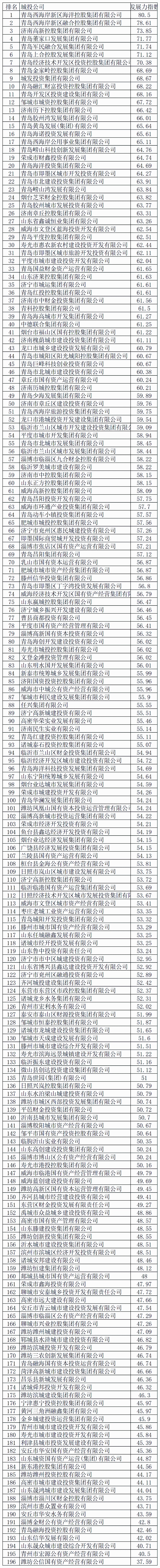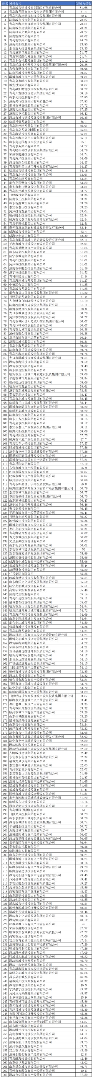 附:山东市县城投2025年年度发展力指数榜单