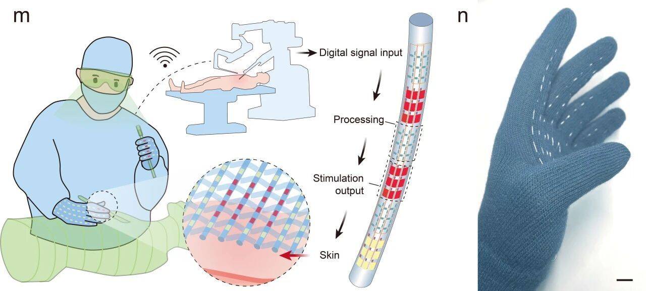 这项技术的应用前景十分广泛。在医疗领域,它可用来制造超细、柔软的脑机接口探针,具有良好的生物安全性,稳定长期地采集和处理神经信号。在穿戴领域,它让制造真正柔软、透气且能显示图案或感知外界信息的“智能服装”成为可能。在虚拟现实方面,用它编织的手套能更逼真地模拟触摸物体的手感,提升虚拟世界的真实体验。