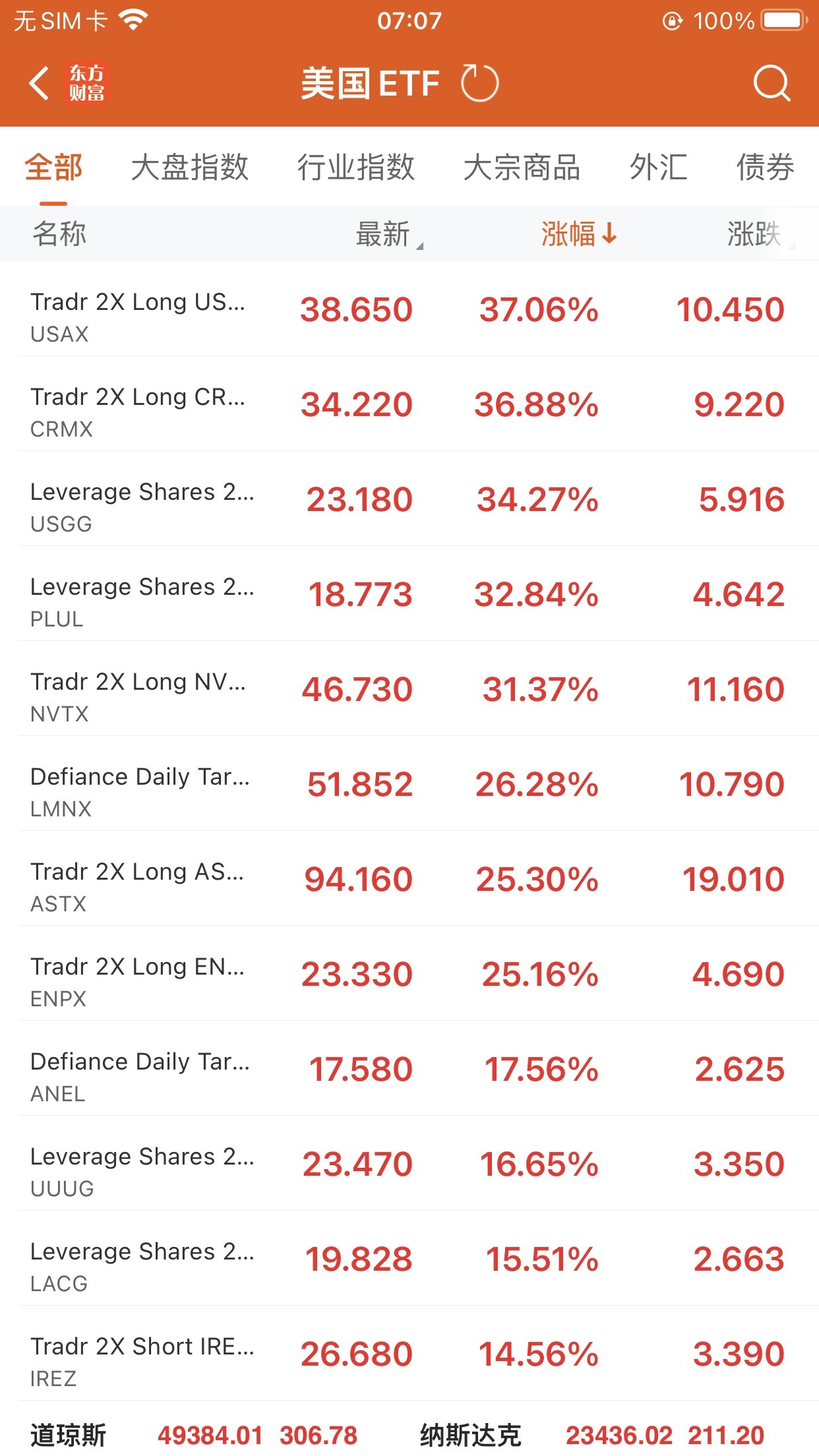 2倍做多USAR ETF-Leverage Shares(USGG.US) 升34.27%,成交额237.6万美元。