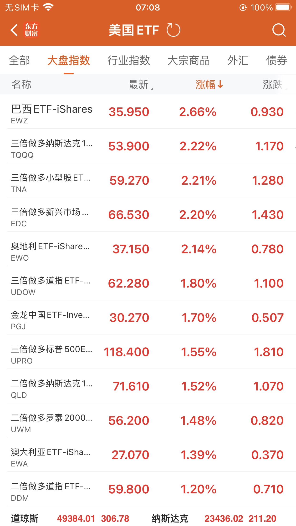 巴西ETF-iShares MSCI(EWZ.US) 升2.66%,成交额21.71亿美元。