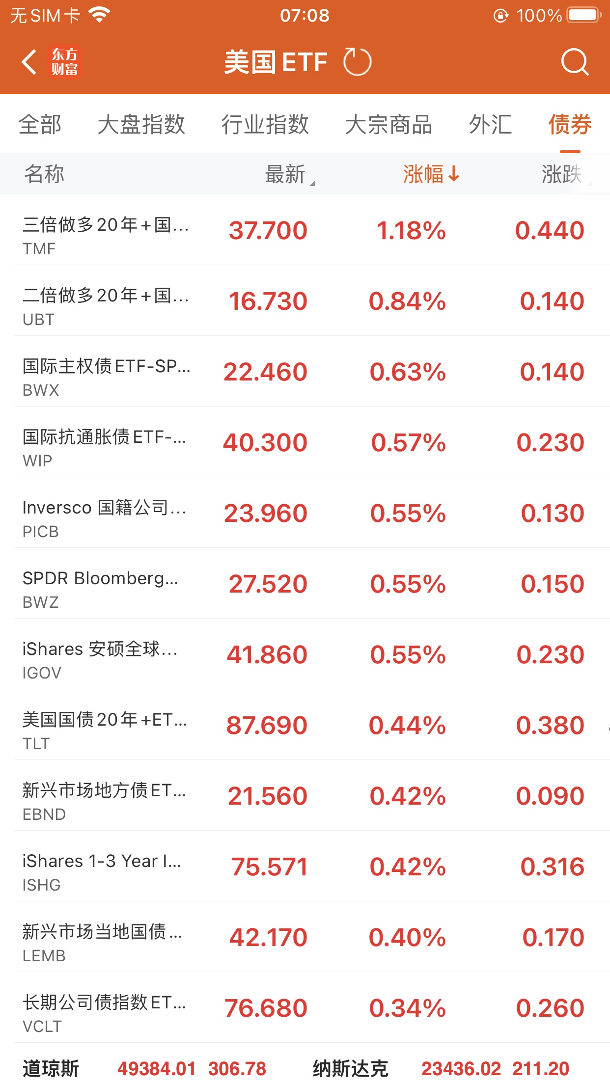 三倍做多20年期以上国债ETF-Direxion(TMF.US) 升1.18%,成交额2.05亿美元。