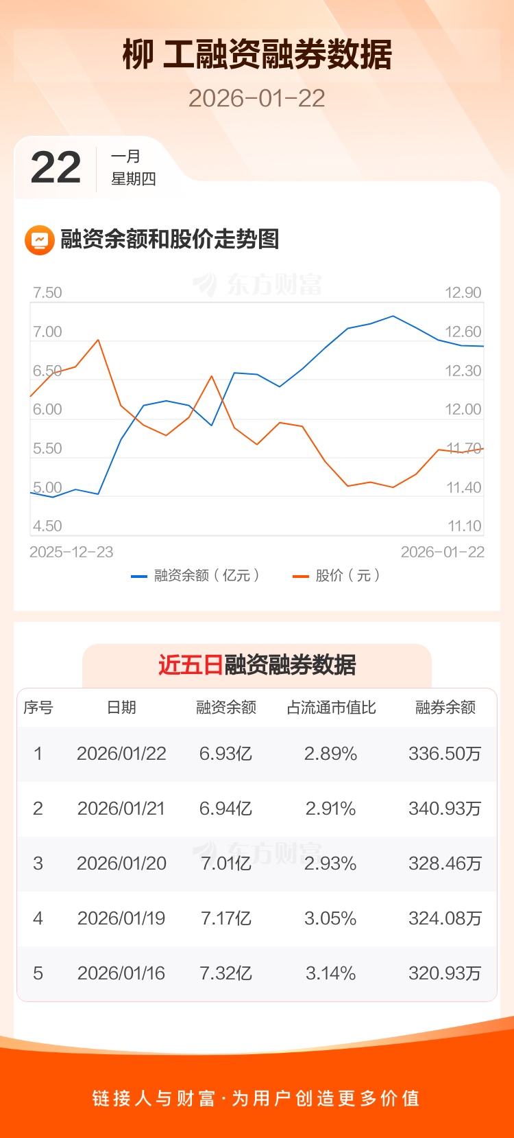 交易所最新数据显示,柳 工于2026年1月22日获融资买入2360.83万元,融资偿还2484.62万元,当日融资净偿还123.8万元。目前,该股融资余额6.93亿,占流通市值比例为2.89%。