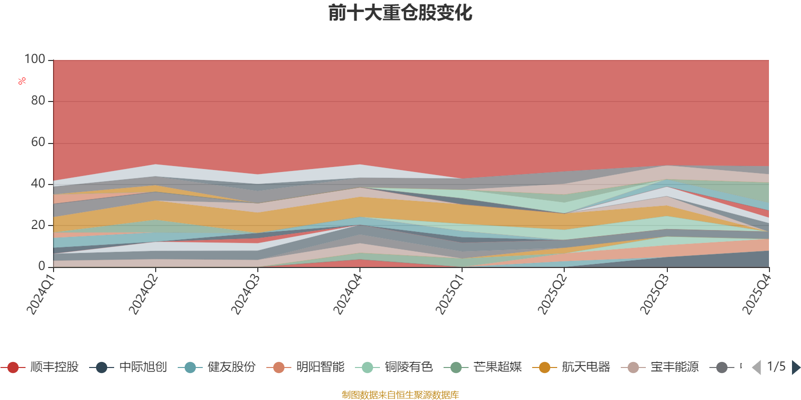 截至2025年四季度末,基金十大重仓股分别是东山精密、中际旭创、明阳智能、新易盛、世纪华通、巨化股份、欣旺达、开润股份、华曙高科、工业富联。