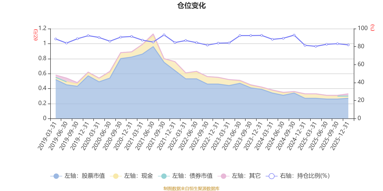 据定期报告数据统计,近三年平均股票仓位为86.75%,同类平均为88.34%。2021年三季度末基金达到93.09%的最高仓位,2025年一季度末最低,为80.35%。