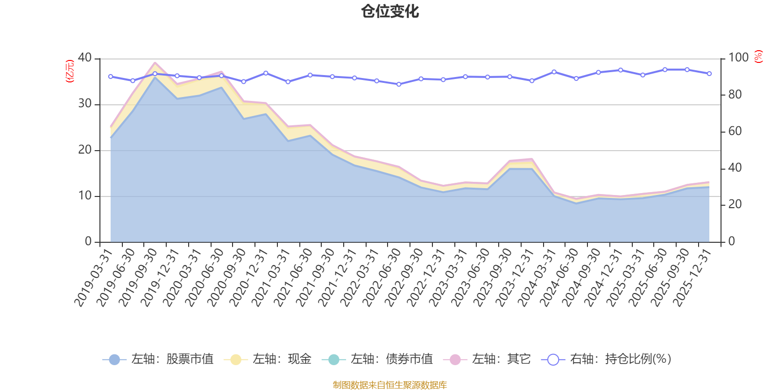 据定期报告数据统计,近三年平均股票仓位为91.38%,同类平均为88.64%。2025年上半年末基金达到93.94%的最高仓位,2022年上半年末最低,为85.96%。