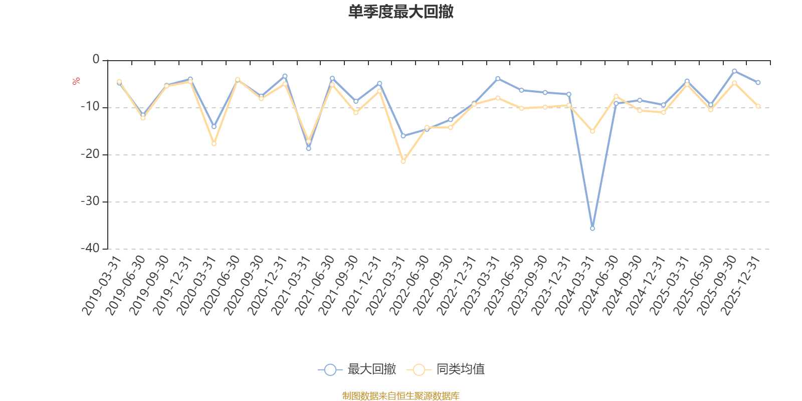 截至1月21日,基金近三年最大回撤为39.92%,同类可比基金排名46/57。单季度最大回撤出现在2024年一季度,为35.66%。