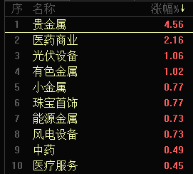 三大指数集体高开!贵金属板块涨幅4.56%,领跑A股
