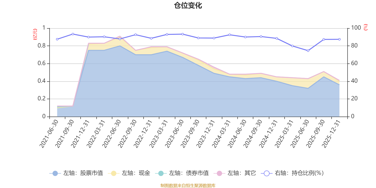 基金管理人在四季报中表示,配置方面,四季度本基金做了一些仓位和配置方面的调整,取得一定成效,既降低了净值的波动,也获取了超过基准的回报。由于2025年三季度指数上涨幅度较大,我们认为股价已经充分反应了当前企业经营的基本面,所以在季度初适当降低仓位,减仓了前期涨幅较大、短期缺乏基本面催化的具身智能、创新药、海外算力相关标的。加仓了基本面好、估值偏低的电解铝、化工、非银金融等板块。
