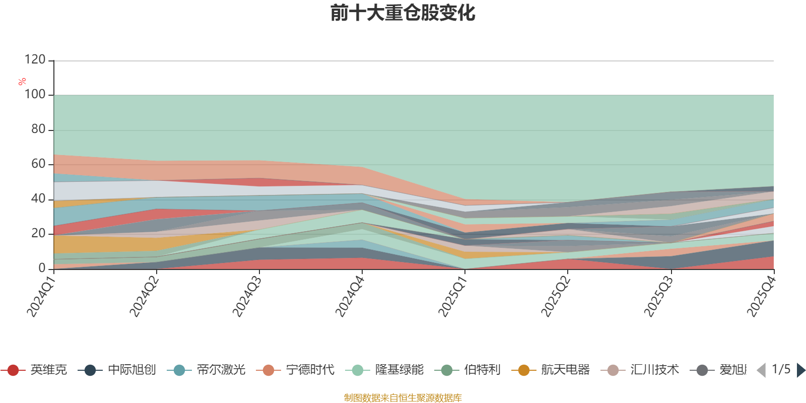 截至2025年四季度末,基金十大重仓股分别是中际旭创、英维克、阳光电源、芯原股份、振华股份、隆基绿能、应流股份、信维通信、华正新材、生益科技。