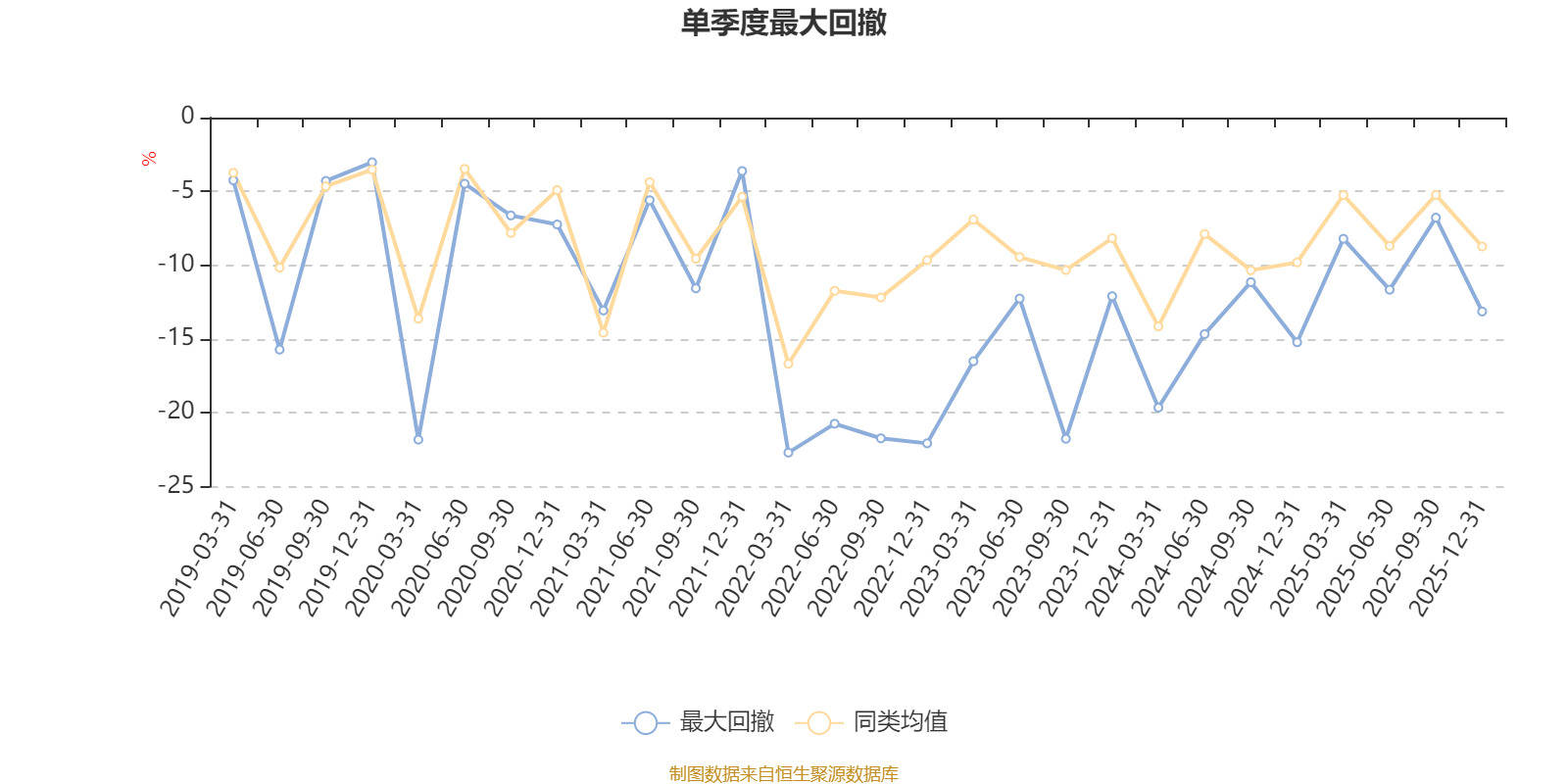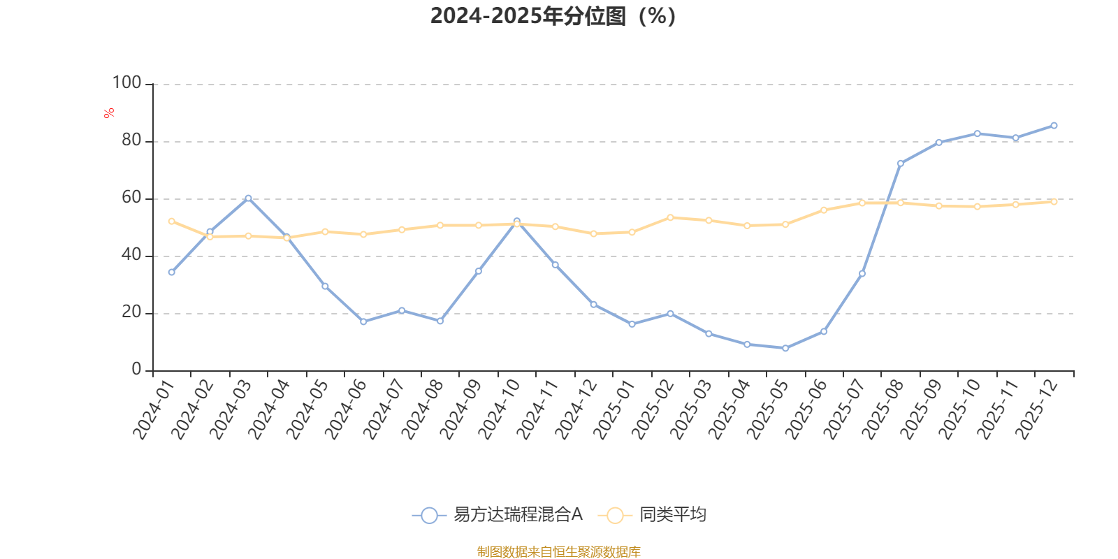 通过所选区间该基金净值增长率分位图,可以观察该基金与同类基金业绩比较情况。图为坐标原点到区间内某时点的净值增长率在同类基金中的分位数。