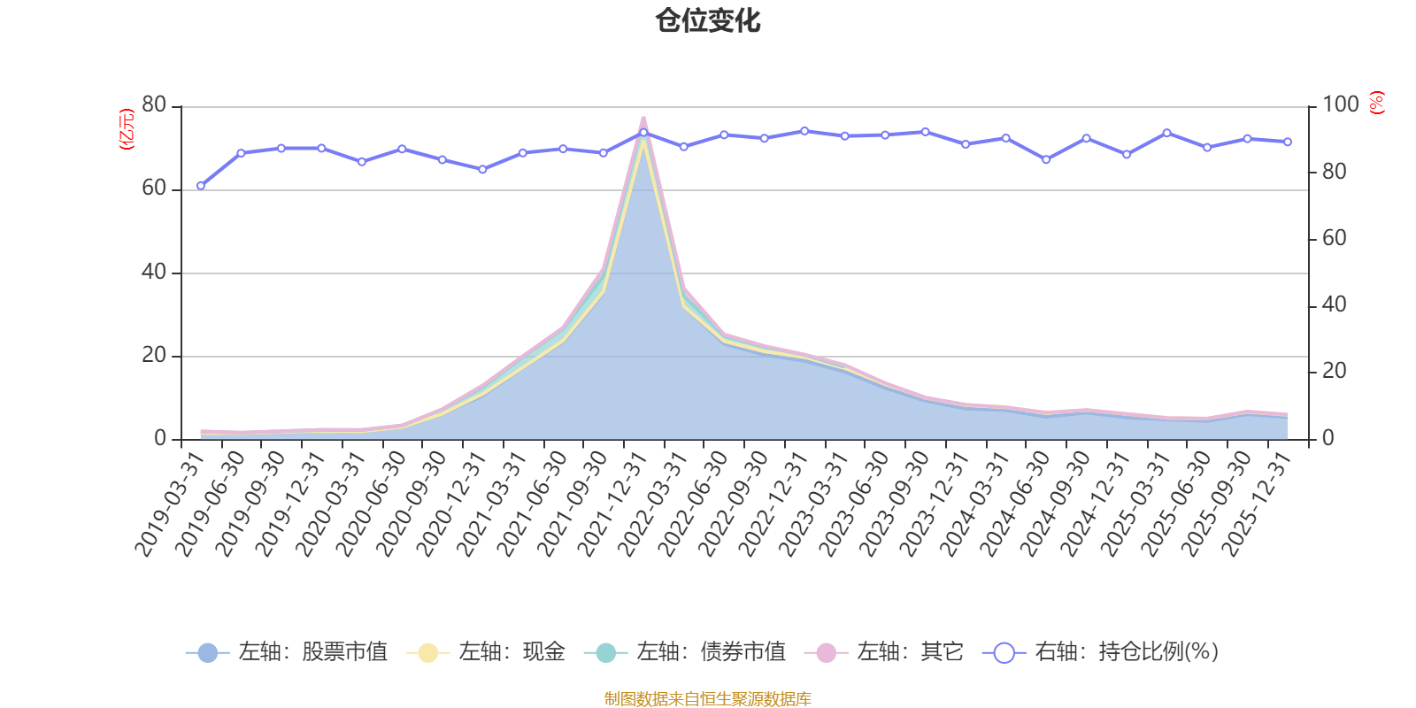 据定期报告数据统计,近三年平均股票仓位为89.4%,同类平均为72.57%。2022年末基金达到92.58%的最高仓位,2019年一季度末最低,为76.14%。