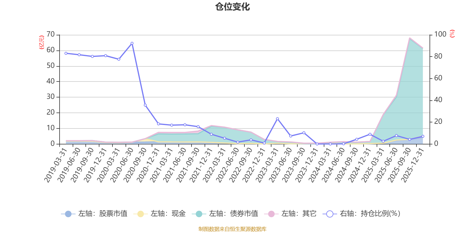 据定期报告数据统计,近三年平均股票仓位为6.3%,同类平均为72.57%。2020年上半年末基金达到92.24%的最高仓位,2024年上半年末最低,为0.19%。