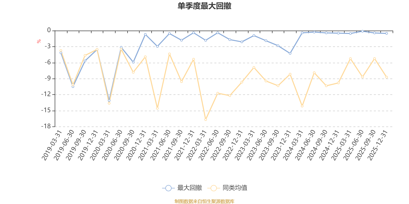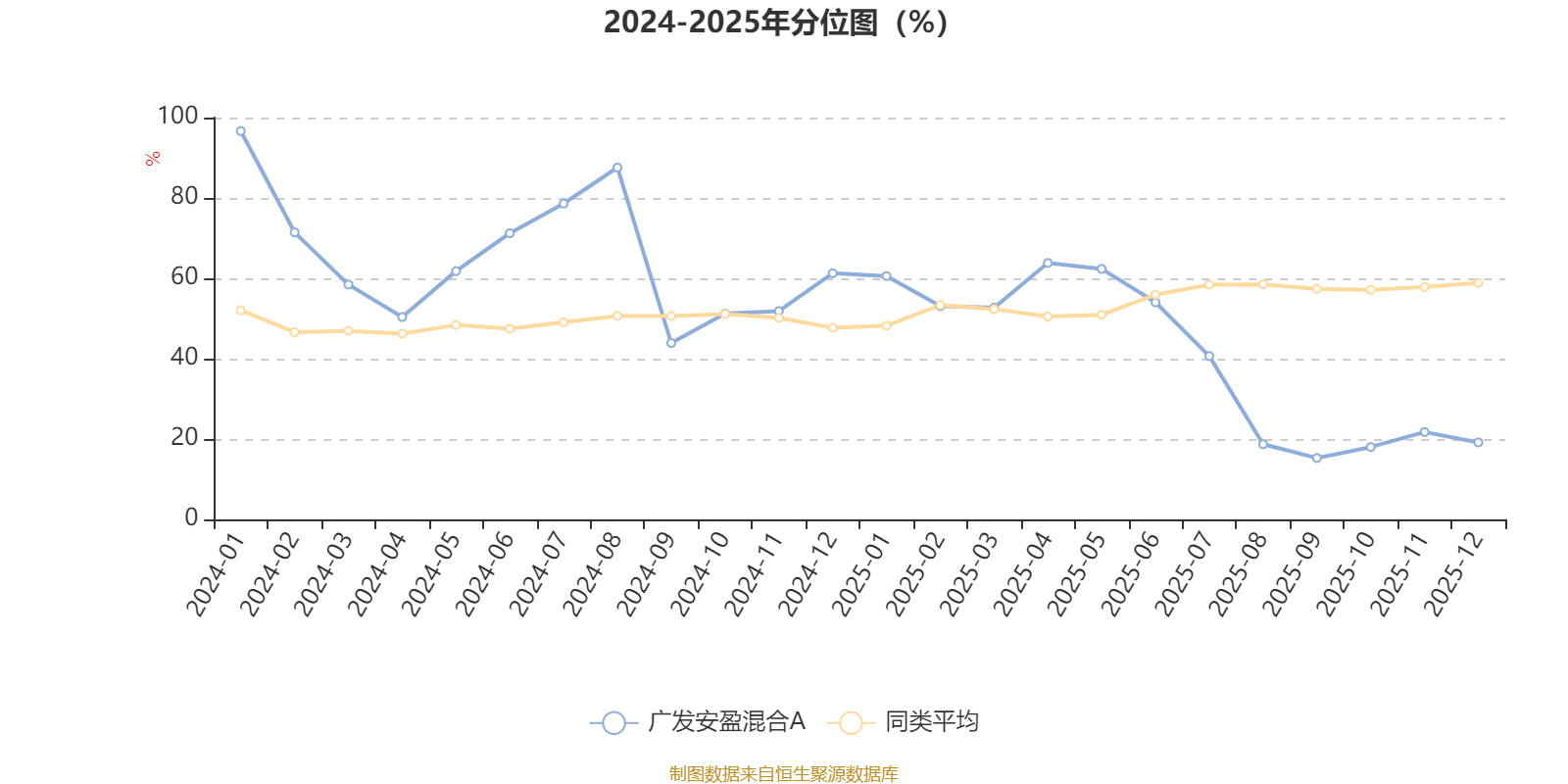 通过所选区间该基金净值增长率分位图,可以观察该基金与同类基金业绩比较情况。图为坐标原点到区间内某时点的净值增长率在同类基金中的分位数。