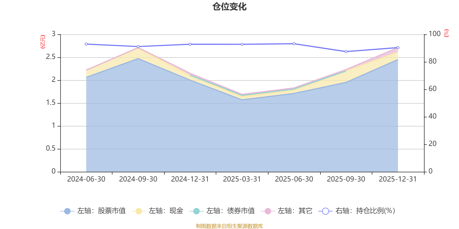 据定期报告数据统计,成立以来平均股票仓位为91.51%,同类平均为86.41%。2025年上半年末基金达到93.19%的最高仓位,2025年三季度末最低,为87.44%。