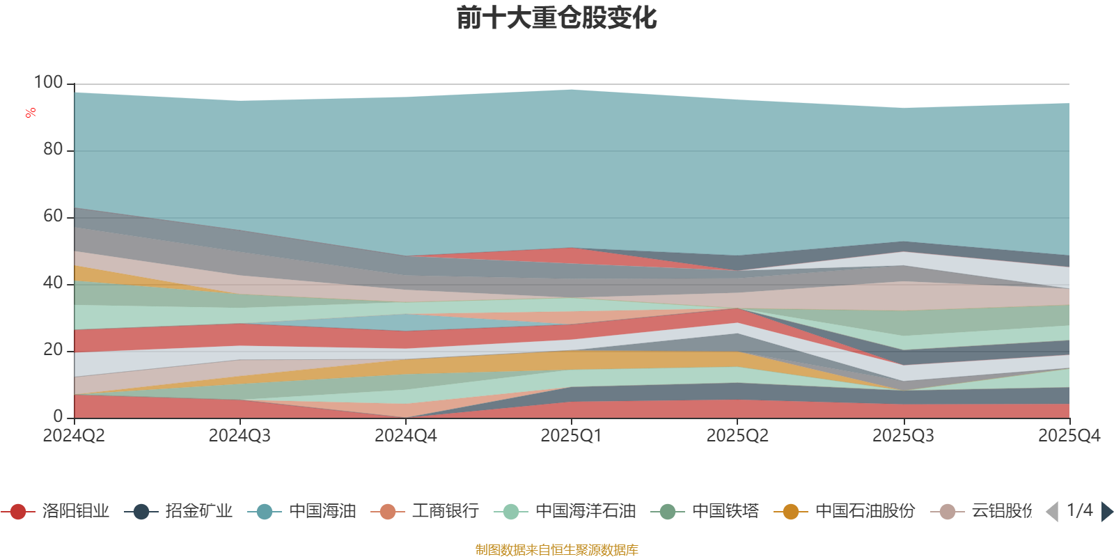 该基金持股集中度较高。截至2025年四季度末,基金重仓股分别是江西铜业股份、山东黄金、中国海洋石油、招金矿业、招商轮船、中国有色矿业、中金黄金、洛阳钼业、紫金矿业、赤峰黄金、江西铜业。