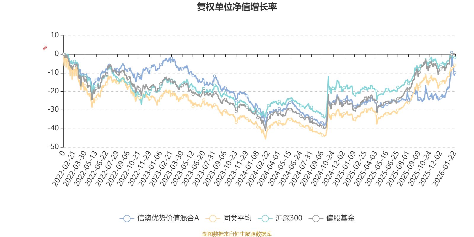 截至1月22日,信澳优势价值混合A近三个月复权单位净值增长率为19.60%,位于同类可比基金18/265;近半年复权单位净值增长率为20.00%,位于同类可比基金172/265;近一年复权单位净值增长率为24.55%,位于同类可比基金222/265;近三年复权单位净值增长率为-6.91%,位于同类可比基金224/256。