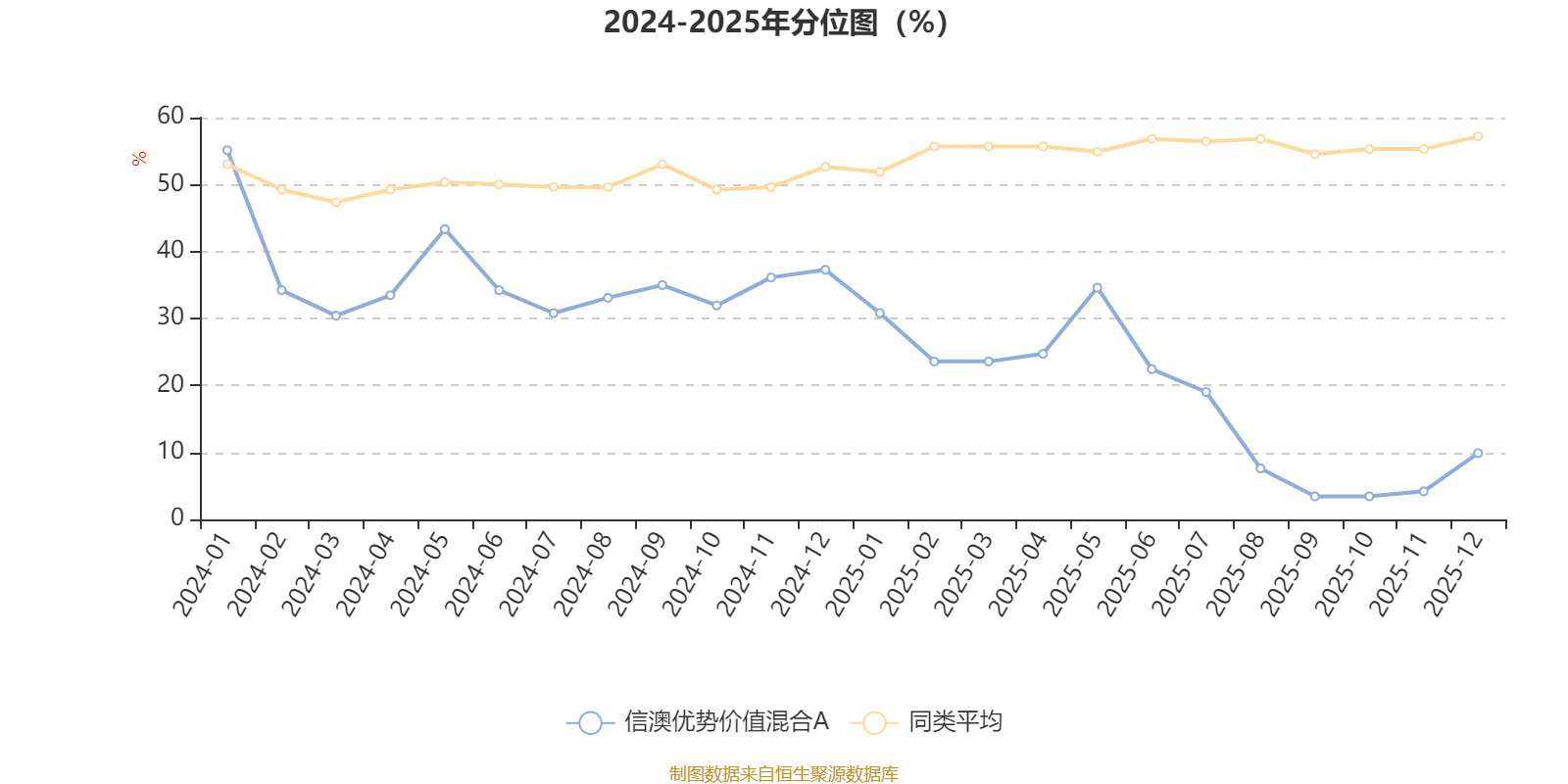 通过所选区间该基金净值增长率分位图,可以观察该基金与同类基金业绩比较情况。图为坐标原点到区间内某时点的净值增长率在同类基金中的分位数。
