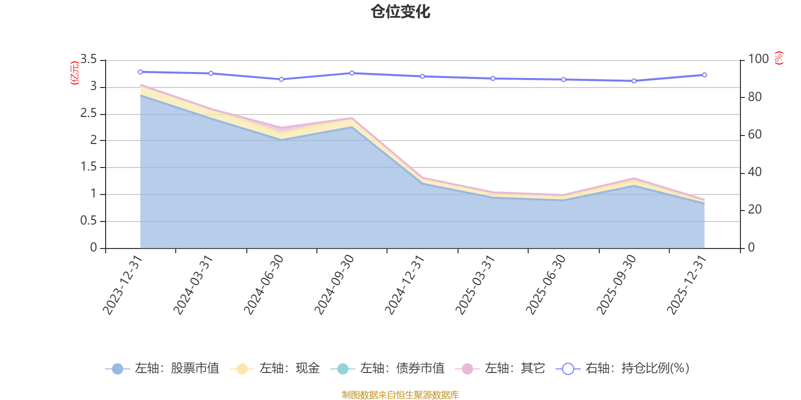 据定期报告数据统计,成立以来平均股票仓位为91.28%,同类平均为84.04%。2023年末基金达到93.66%的最高仓位,2025年三季度末最低,为88.88%。