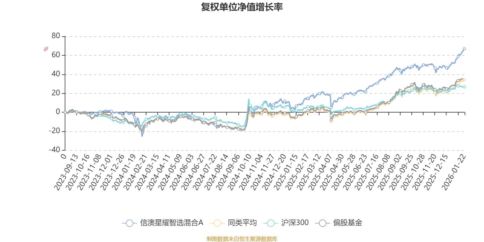 截至1月22日,信澳星耀智选混合A近三个月复权单位净值增长率为13.21%,位于同类可比基金217/689;近半年复权单位净值增长率为24.32%,位于同类可比基金339/689;近一年复权单位净值增长率为54.94%,位于同类可比基金150/673。
