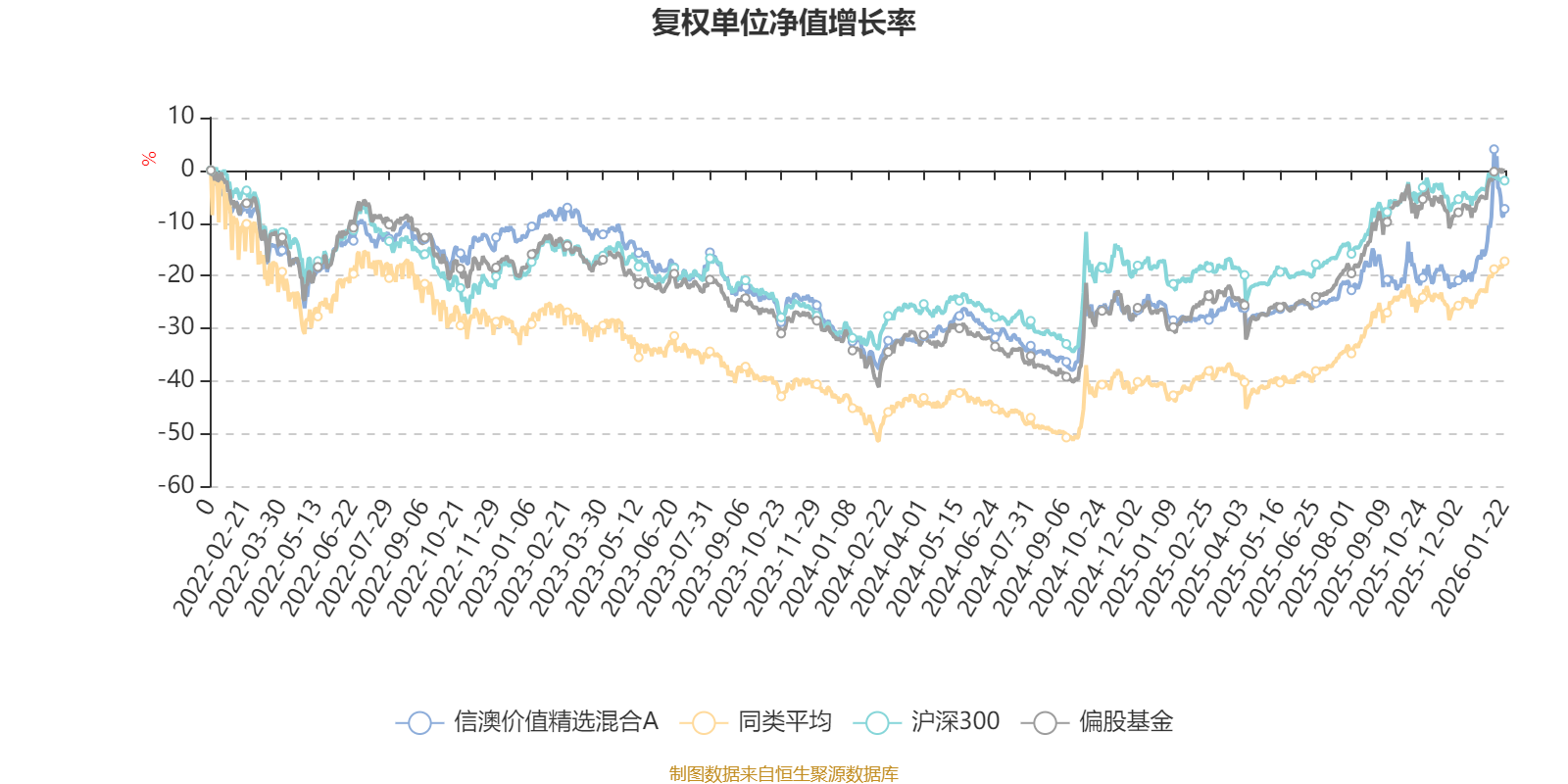 截至1月22日,信澳价值精选混合A近三个月复权单位净值增长率为18.48%,位于同类可比基金55/621;近半年复权单位净值增长率为18.44%,位于同类可比基金429/621;近一年复权单位净值增长率为30.06%,位于同类可比基金431/613;近三年复权单位净值增长率为1.09%,位于同类可比基金404/535。