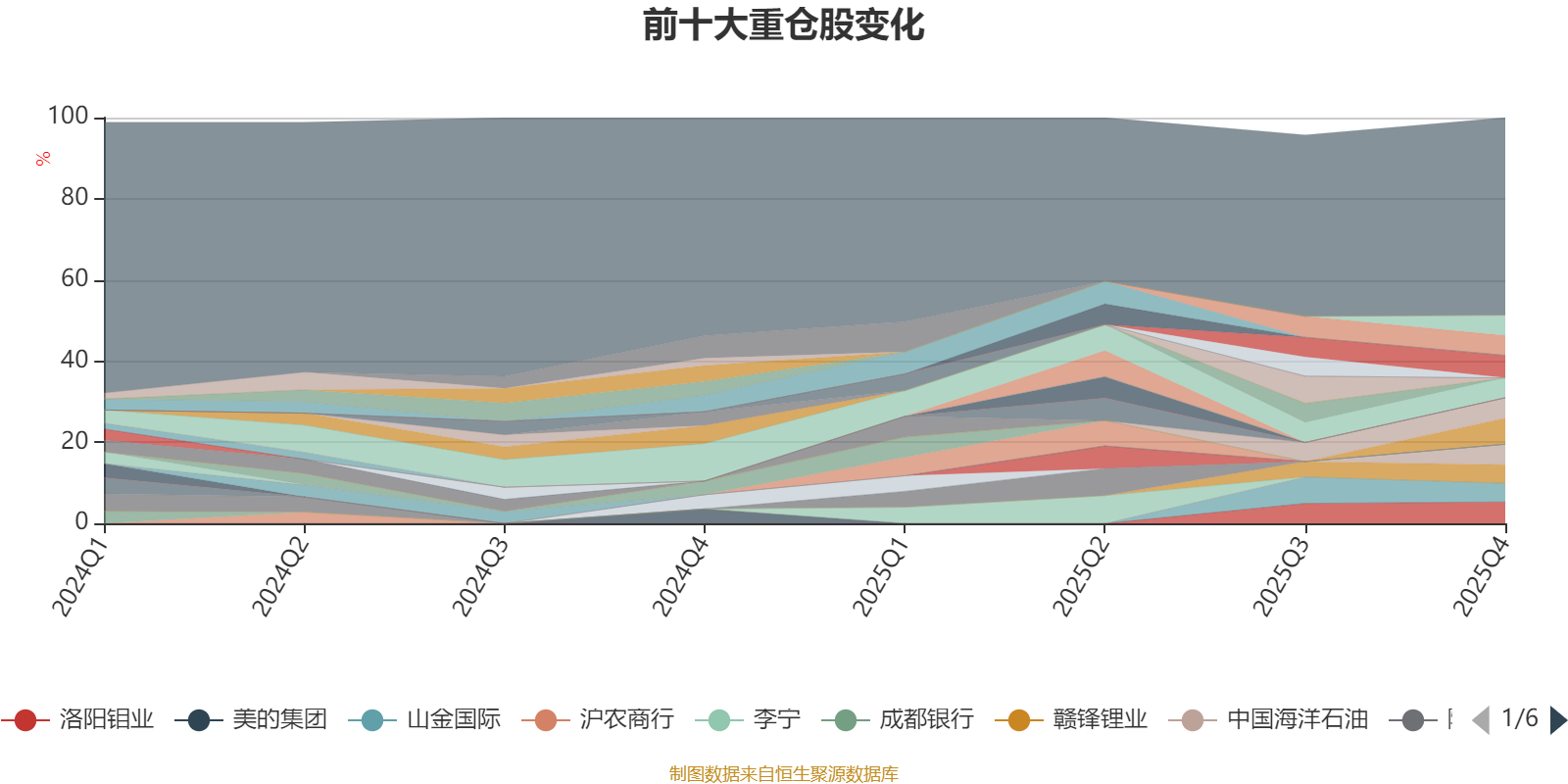 截至2025年四季度末,基金十大重仓股分别是紫金矿业、汇丰控股、洛阳钼业、中国海洋石油、华新建材、中国铝业、华友钴业、光大环境、赣锋锂业、山金国际。