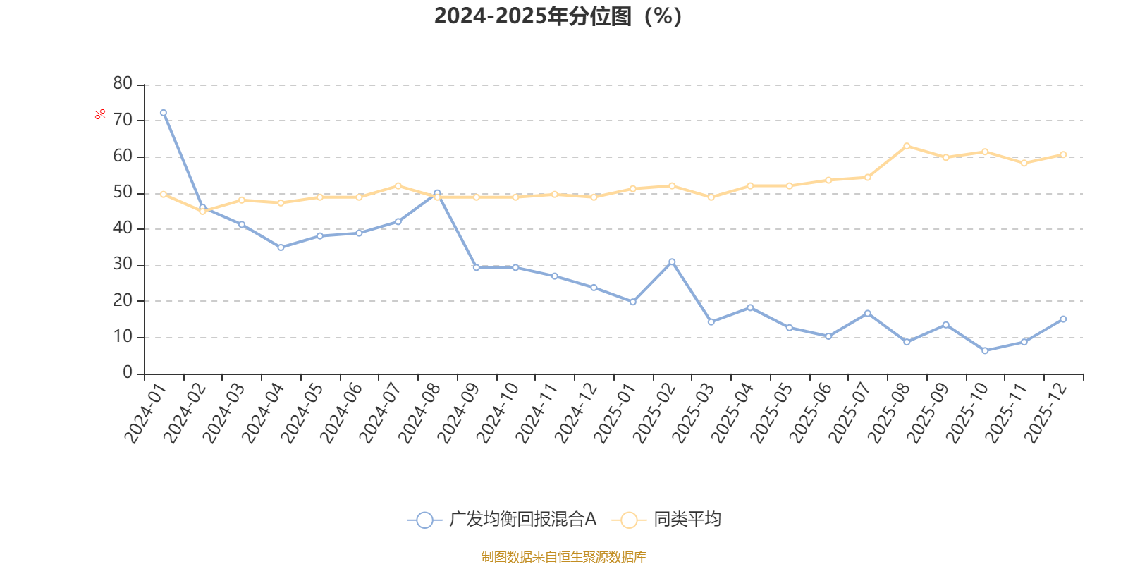 通过所选区间该基金净值增长率分位图,可以观察该基金与同类基金业绩比较情况。图为坐标原点到区间内某时点的净值增长率在同类基金中的分位数。