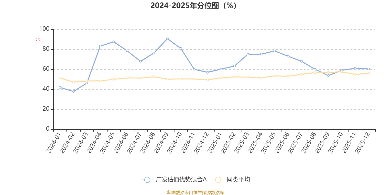 通过所选区间该基金净值增长率分位图,可以观察该基金与同类基金业绩比较情况。图为坐标原点到区间内某时点的净值增长率在同类基金中的分位数。