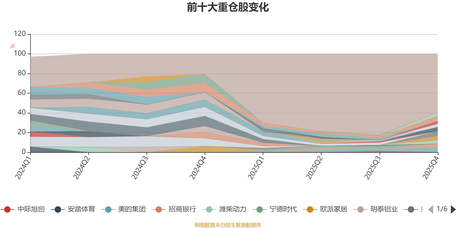 截至2025年四季度末,基金十大重仓股分别是中国平安、兴业银行、美的集团、中远海控、中国石油、招商银行、交通银行、格力电器、中国石化、平安银行。