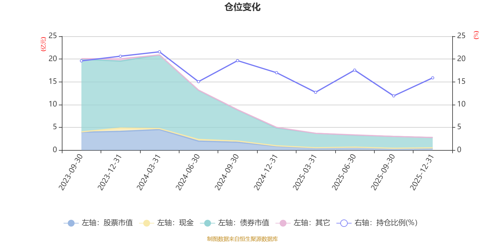基金管理人在四季报中表示,从大类资产来讲,我们对权益资产的中期判断仍然是底部逐渐抬升。2026 年板块的机会可能更加分散,需要注意估值和产业趋势的相对位置,在合理的估值下定价。2025 年四季度债券市场收益率曲线进一步增陡,市场在消化前期对通缩过度悲观的预期。在当下的位置,财政政策可能比货币政策对经济的边际贡献更大,如果反内卷和内需的底部企稳能使得 PPI 更快回升,那么长端收益仍有上行压力,我们短期对债券仍然保持偏防守的态度。