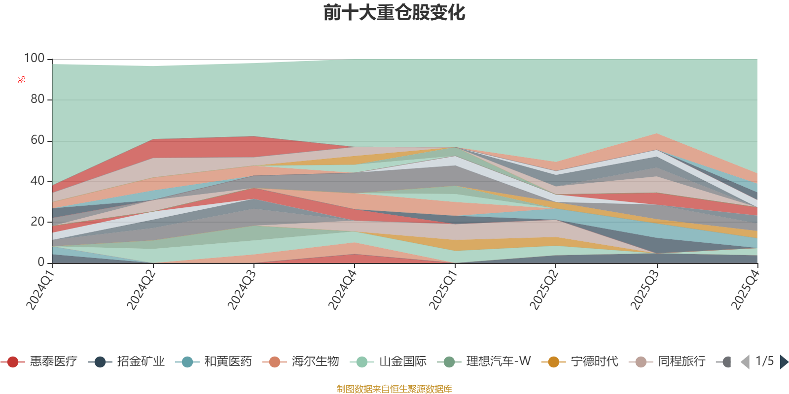 截至2025年四季度末,基金重仓股分别是贝壳-W、中国黄金国际、中国国航、东方电缆、紫金矿业、招金矿业、浩洋股份、腾讯控股、山金国际、南方航空、中国南方航空股份。