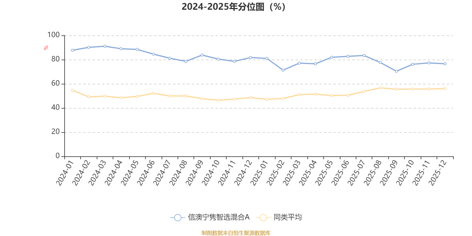 通过所选区间该基金净值增长率分位图,可以观察该基金与同类基金业绩比较情况。图为坐标原点到区间内某时点的净值增长率在同类基金中的分位数。